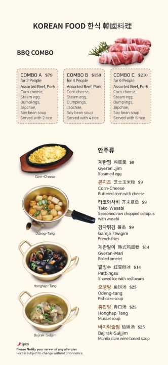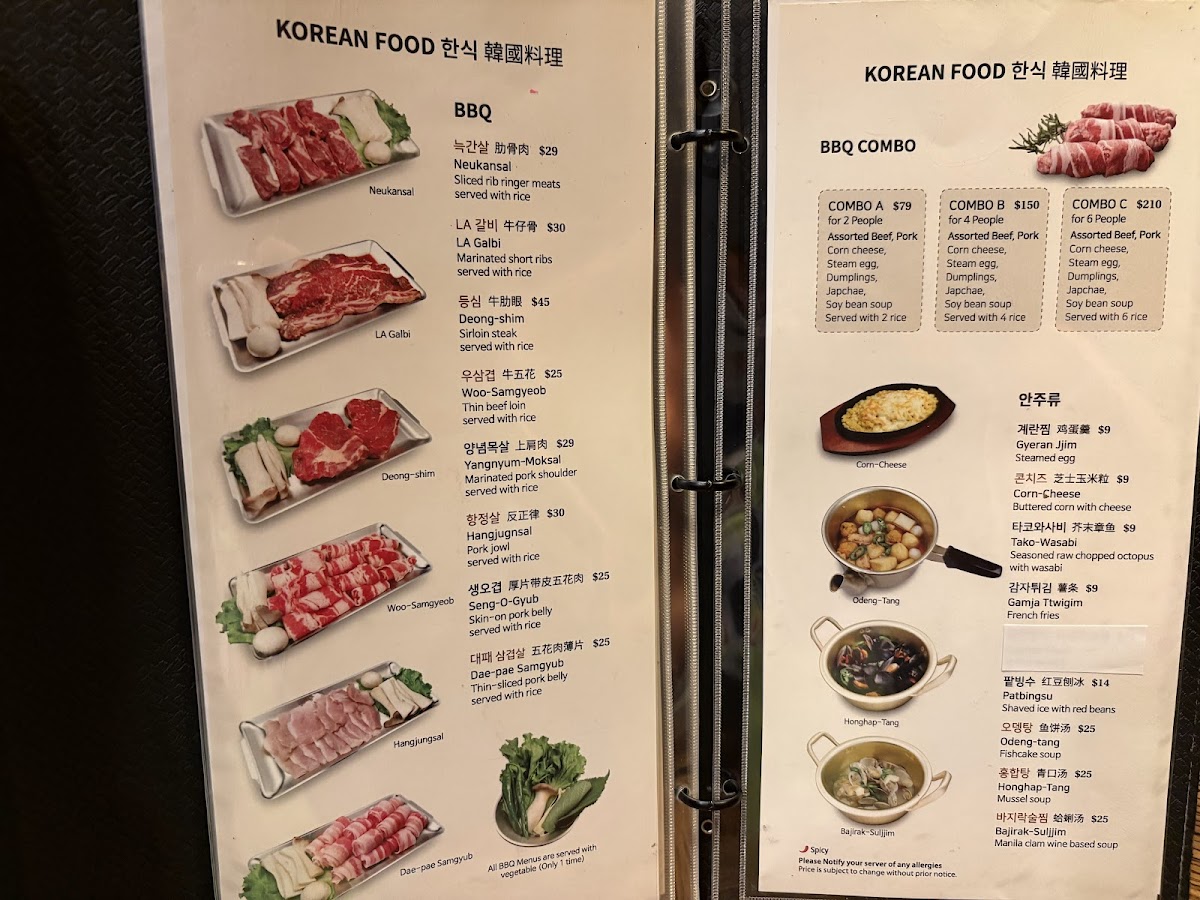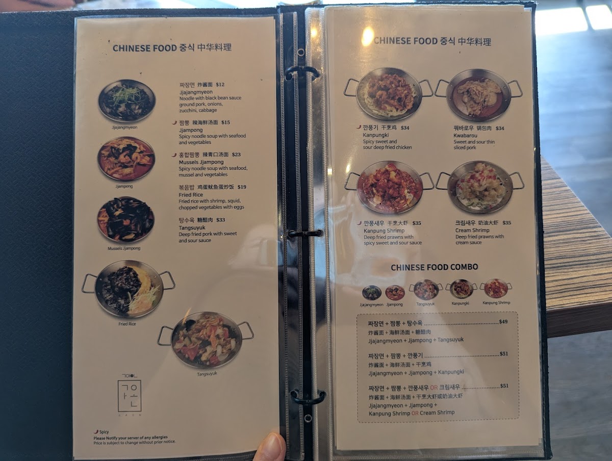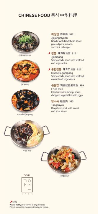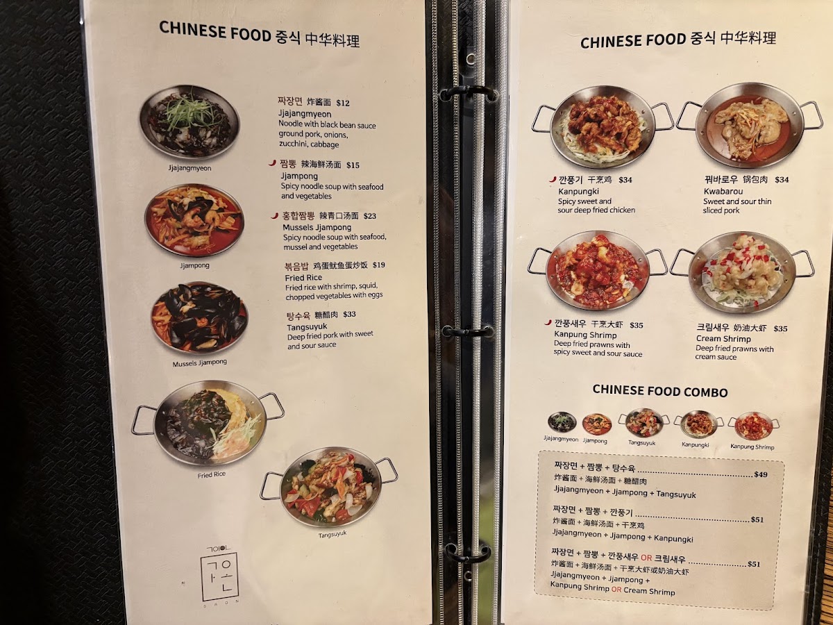 As a concluding impression of the menu at Gaon Korean Cuisine, the restaurant presents a well-rounded and thoughtfully curated selection that captures the depth and comfort of traditional Korean dining while encouraging sharing and variety. The experience can begin with appetizers like Gun Mandu, offering a crisp and savory introduction, before moving into the generous Sharing Menu where dishes such as Dak-Galbi, La Galbi, Fried RiceAhgu Jjim, and Pajeon highlight bold marinades, hearty portions, and the communal spirit of Korean meals. The BBQ section is a clear centerpiece, featuring quality cuts like Woo-Samgyeob, Dae-Pae Samgyub, Deong ShimHangjungsal, and Neukansal, all designed to be grilled to personal preference and enjoyed with classic accompaniments. For those craving familiar comfort, the Korean Food category delivers staples such as Kimchi Fried Rice, Kimchi Jjigae, Gamja-TangBibimbab, Doenjang Jjigae, and Bibimbab, each reflecting the balance of spice, warmth, and tradition found in everyday Korean cuisine. The Hotpot options, including Gamja-Tang and Budae-Jjigae, are ideal for sharing, offering rich broths and deeply satisfying flavors. Group diners will appreciate the convenience of BBQ Combos like Combo A, Combo B, and Combo C, which simplify ordering while showcasing variety. The menu further expands with Korean Chinese favorites such as Tangsuyuk, Jjajangmyeon, KanpungkiFried Rice, and Jjampong, blending sweet, savory, and spicy notes, while quick bites and desserts like Odeng-Tang, Bajirak-Suljjim, PatbingsuGyeran Jjim, and Tako-Wasabi add playful variety. Finally, set options such as Kanpungki Combo and Tangsuyuk Combo round out the menu, reinforcing Gaon Korean Cuisine’s focus on diversity, value, and an authentic, satisfying dining experience.